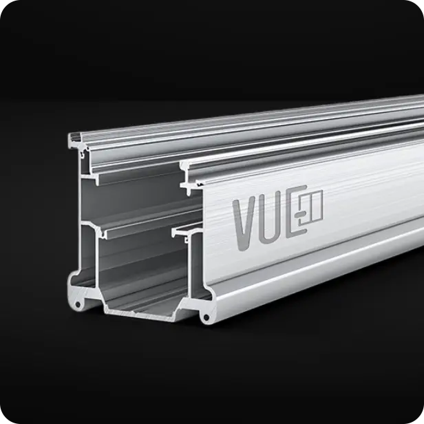 The VUE logo is designed as a clean, minimalist wordmark that reflects modern architecture and precision manufacturing. Its structured letterforms and balanced proportions convey strength, clarity, and reliability.